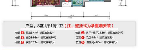 2、根據(jù)公式:各房間所需片數(shù)=各房間的房屋面積/(單片暖氣片的散熱量/100)